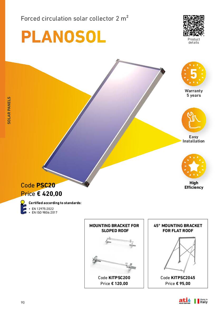 PLANOSOL - Forced circulation solar collector 2 m²