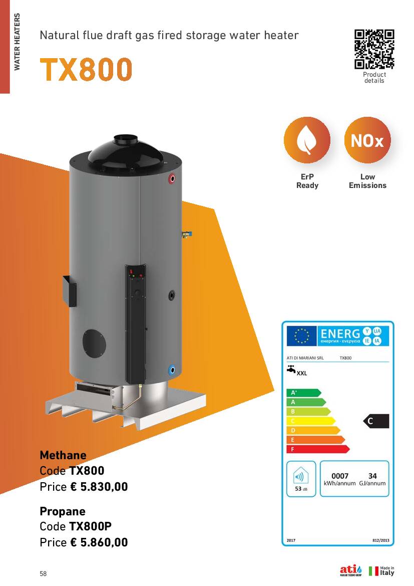 TX is the new range of natural draft water heaters redesigned in compliance with the new Low NOx ErP 2018 regulation.