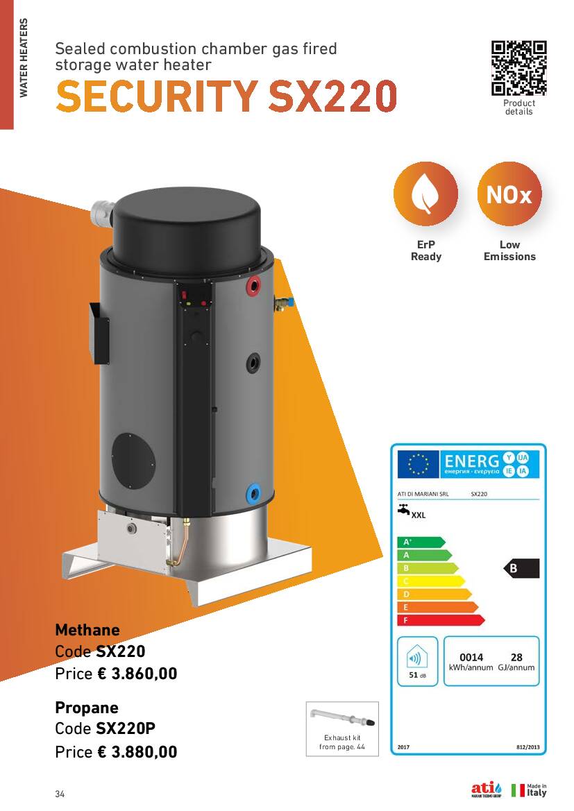 | Consumo gas [G31 propano] | kg/h | 1,7 |