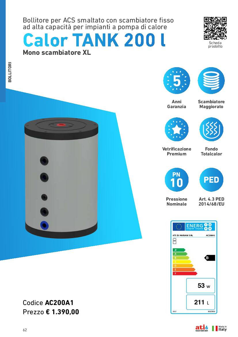 | Capacità nominale serbatoio | L | 200 |