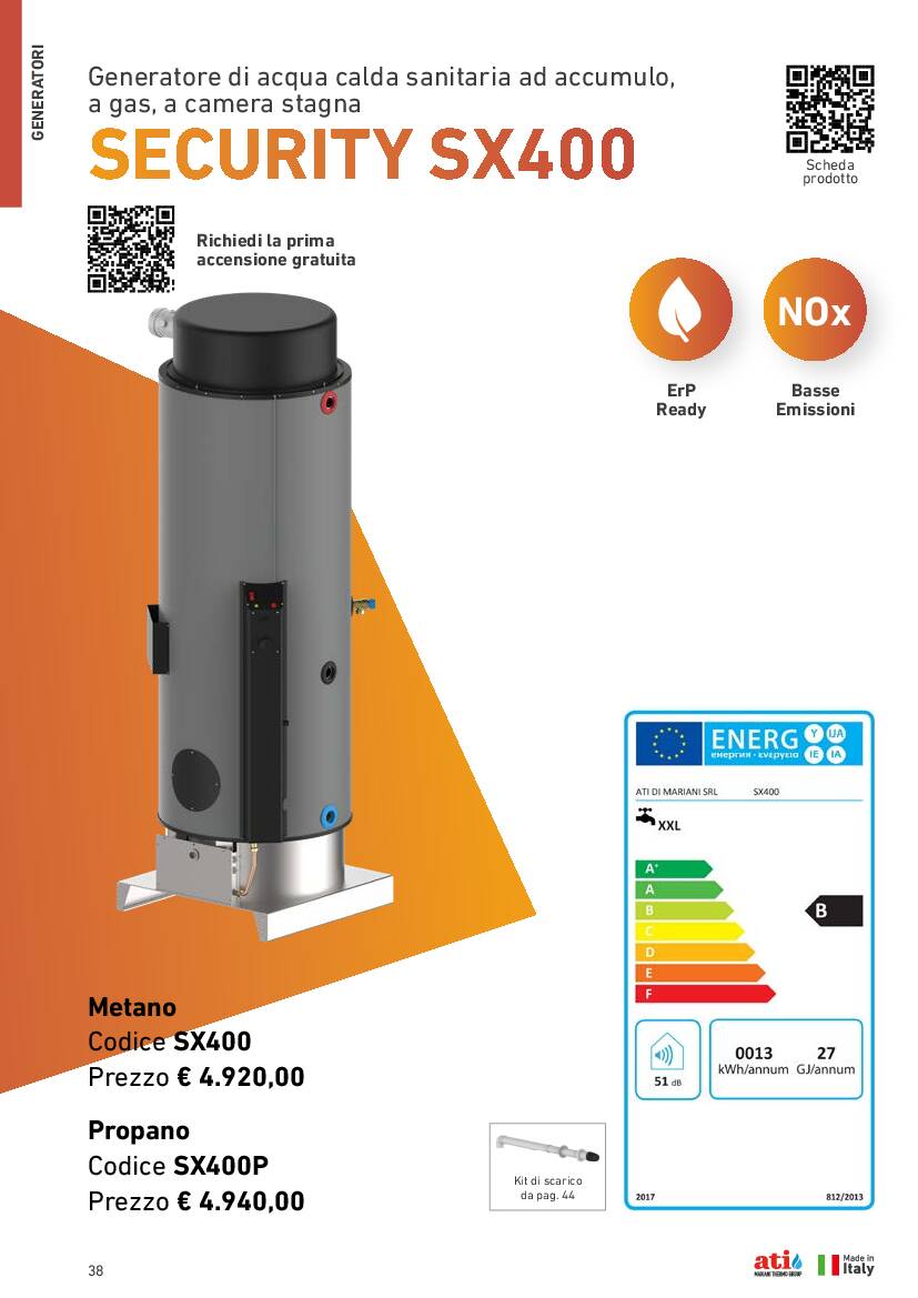 | Produzione in continuo [ΔT=50°C] | l/h | 370 |