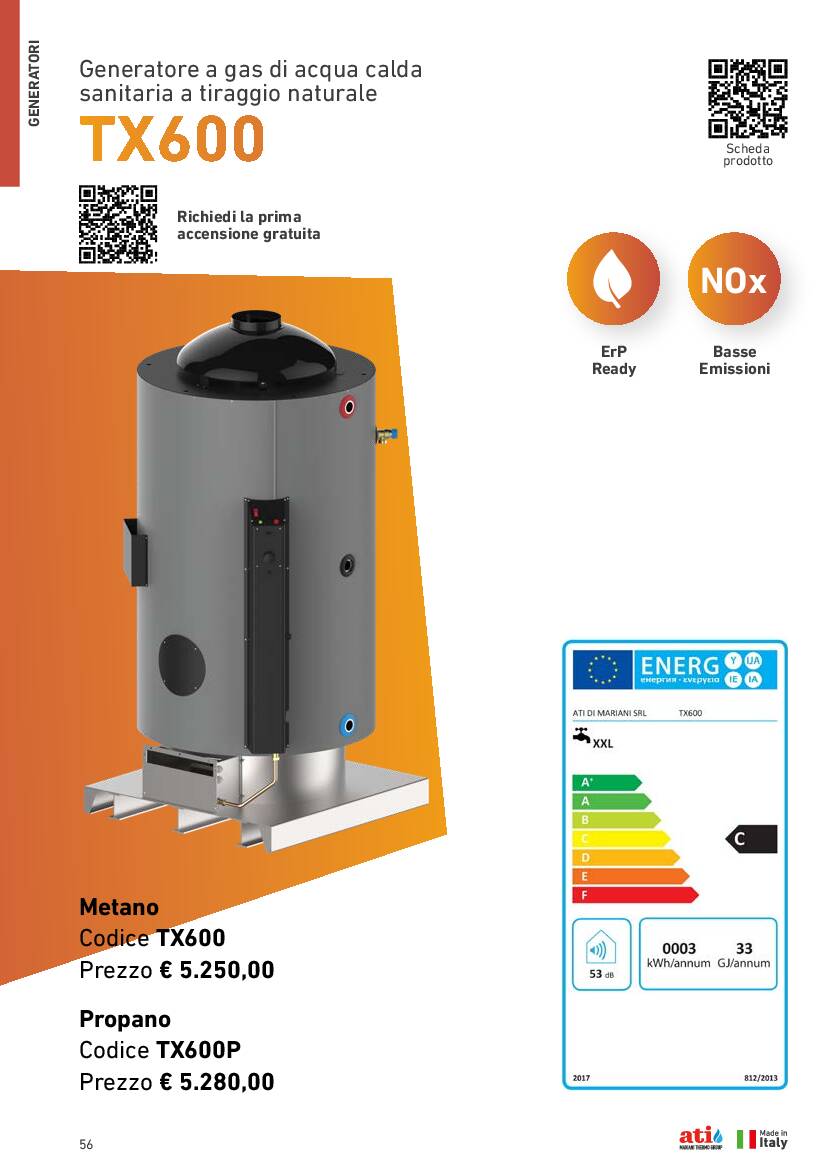 TX è la nuova gamma di scaldacqua a tiraggio naturale riprogettata nel rispetto del nuovo regolamento ErP 2018 a basso NOx.
